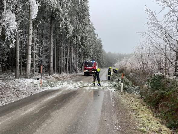 Am 7. Februar um 12:58 Uhr wurden wir zu einem Sturmschaden auf der L8142 KM 0,6 in Fahrtrichtung Schwarzenberg gerufen...
